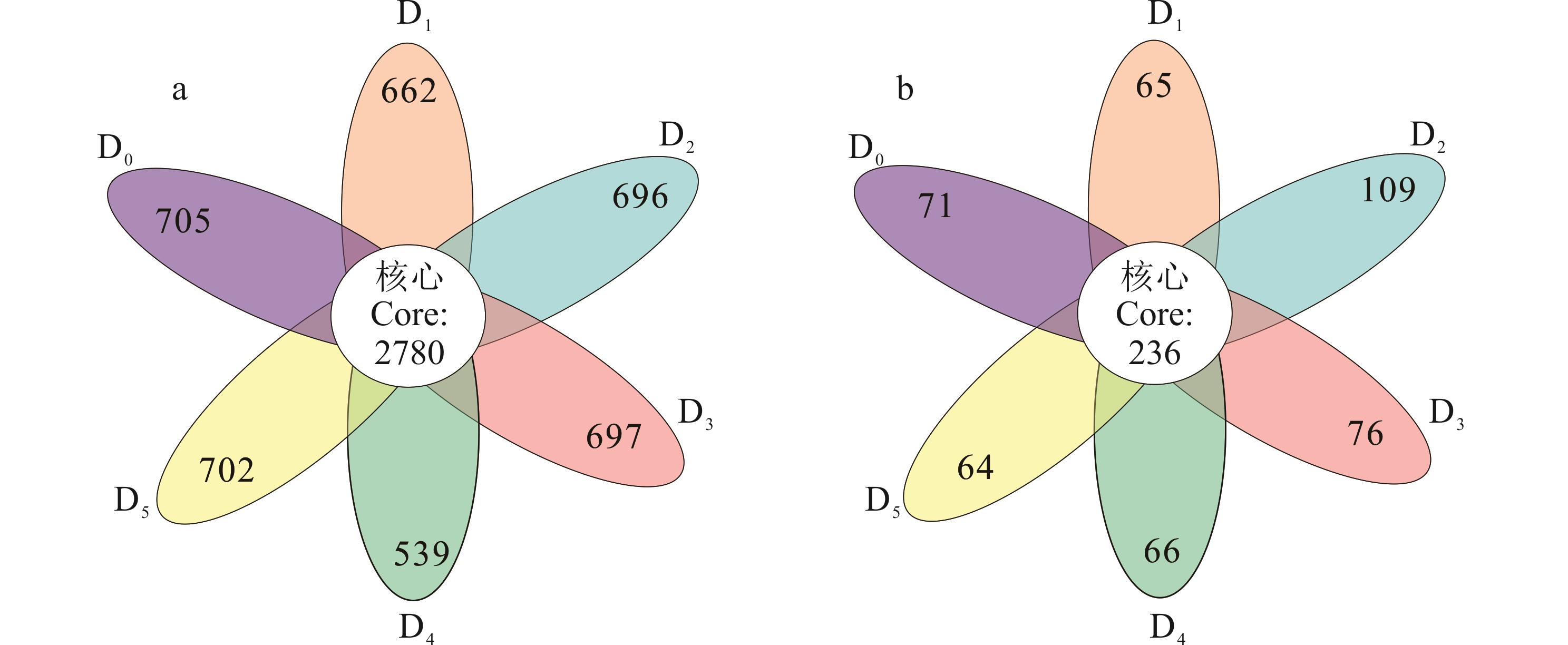 图1 不同黄帚橐吾密度斑块土壤细菌(a)和真菌(b)序列OTUs Venn 分析