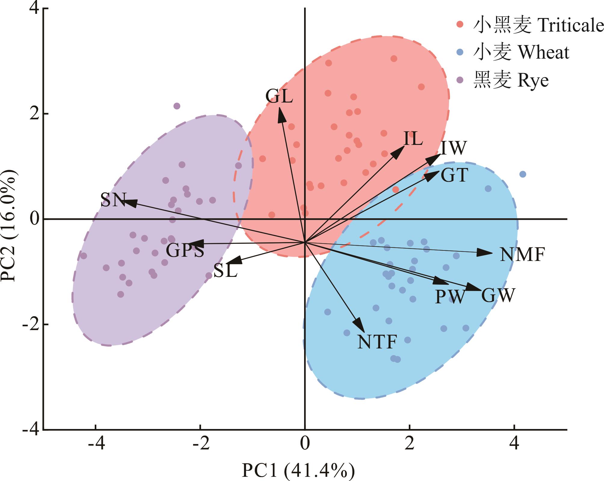 关键词: 小黑麦, 花序, 穗部, 结构特征, 主成分分析, 正交偏最小二乘判别分析