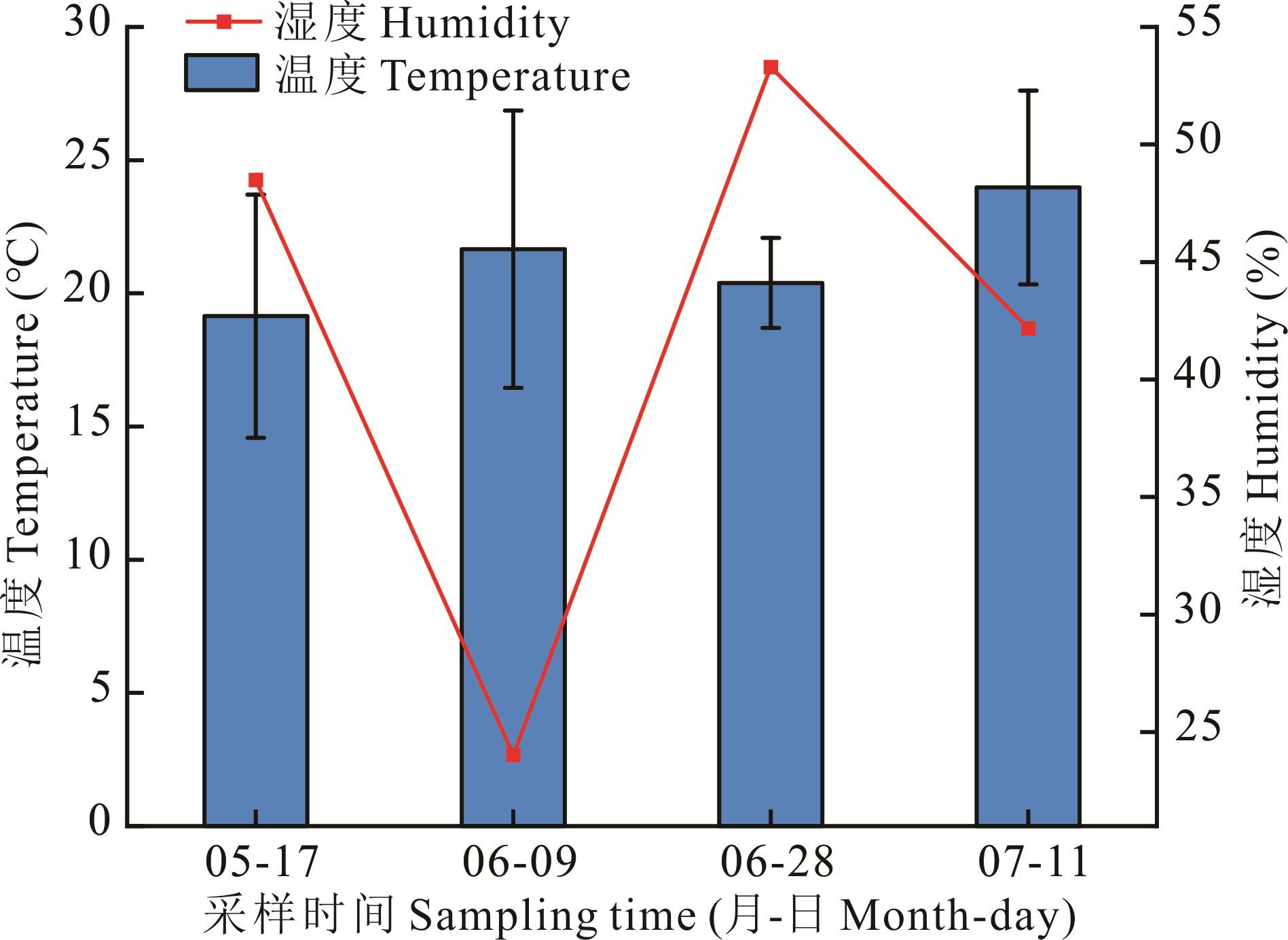 图1 采样时间及当日天气状况05-17为分蘖期,06-09为拔节期,06-28为抽穗期,07-11为成熟期。05-17 is the tillering stage, 06-09 is the jointing stage, 06-28 is the heading stage, and 07-11 is the maturity stage.