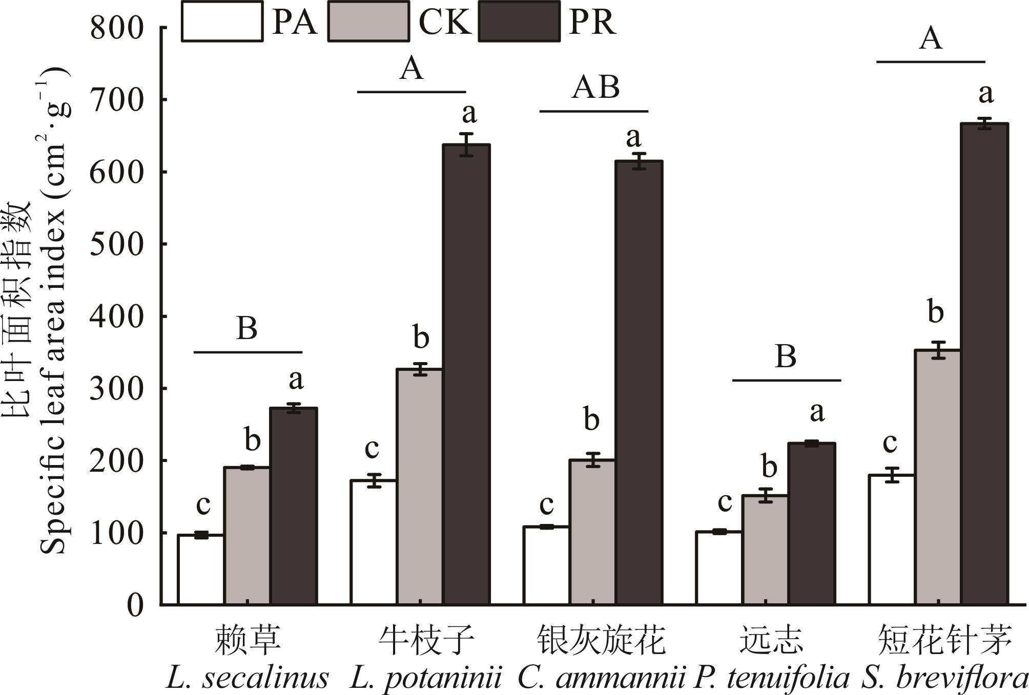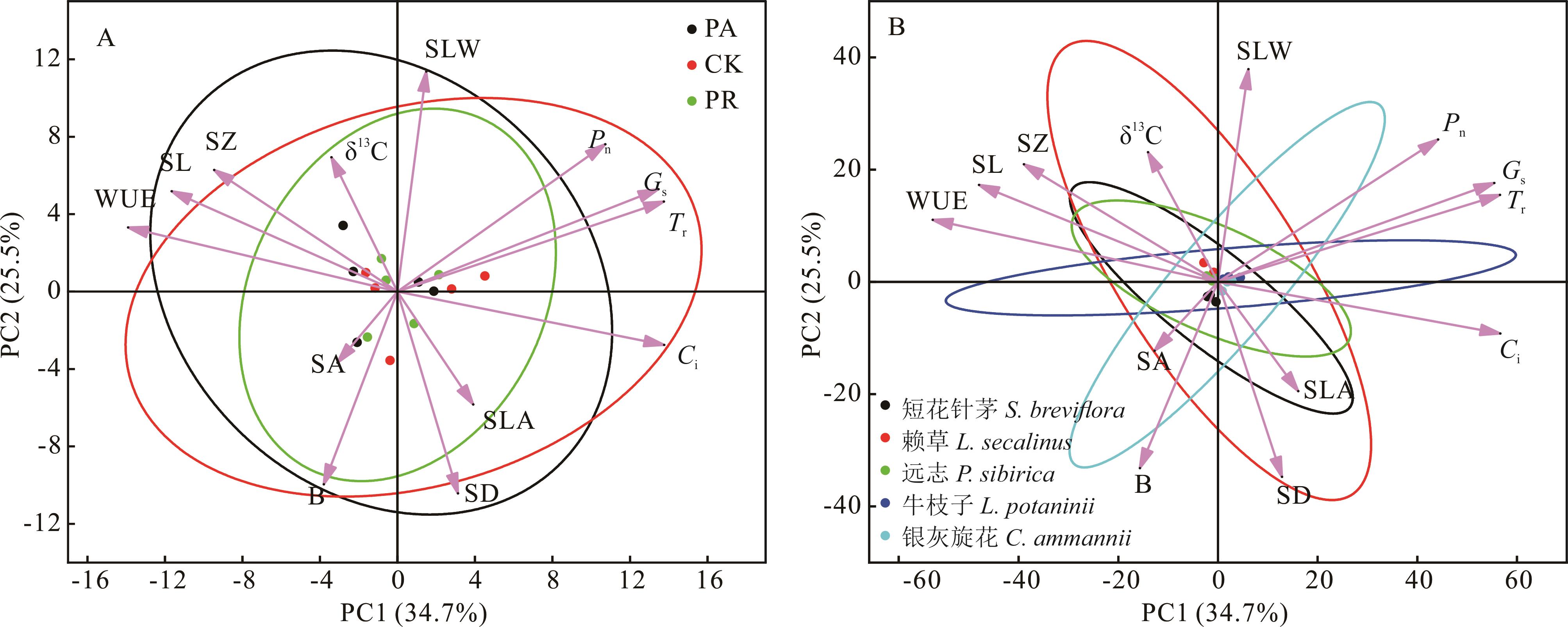 短花针茅 S. breviflora | PA | 1.23±0.03b | 160.67±0.62c | 271.27±6.59a | 4.38±0.11a |