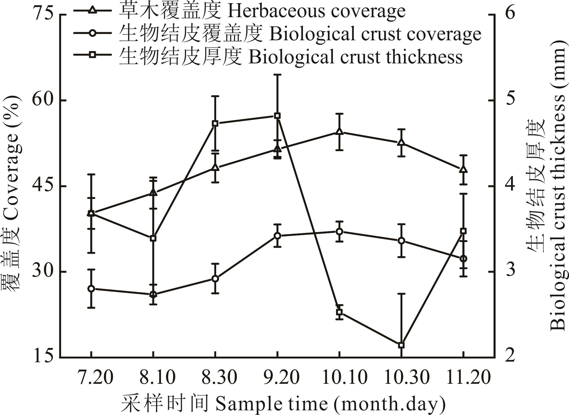 | 结皮厚度Biological crust thickness | -0.528 | -0.343 | - | 0.155 | -0.147 | -0.335 | -0.863 |
