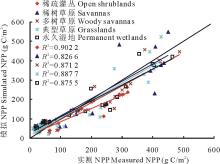 建模方法:根据实测NPP与NDVI的统计分析结果, 提出模型初步结构, 然后利用非线性拟合的最优算法确定不同类型草地的参数值。
