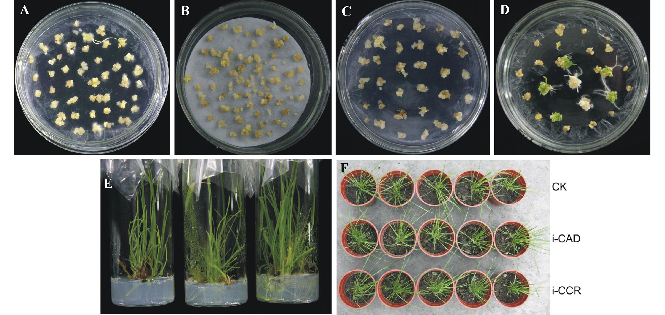 获得的干扰CAD基因的转基因株系命名为i-CAD, 干扰CCR基因的命名为i-CCR。