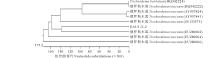 将以上GenBank 核苷酸数据库中的参比菌株和筛选到的菌株GAU1-X-2的序列用DNAStar软件绘制聚类分析图。结果表明,菌株GAU1-X-2与登录号为EU280062( T. rossicum)位于聚类图的同一分枝,聚为一类( 图4)。