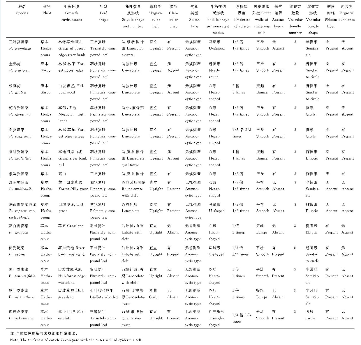 | 表3 东北委陵菜属叶的形态结构 Table 3 The leaf shape and structure of Potentilla in northeastern China |