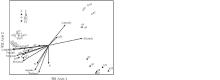 | 表4 各排序轴特征值及各排序轴与环境因子的相关系数 Table 4 The eigenvalues of ordination axes and the correlation coefficients between ordination axes and environmental factors |