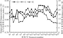 重要值的计算由于草本植物个体数统计较为困难, 为使计算的各种指数更具代表性, 便于不同群丛间的比较, 本文采用各物种的重要值代替个体数进行计算, 其公式如下:重要值(Ⅳ )=(相对频度+相对盖度)/2