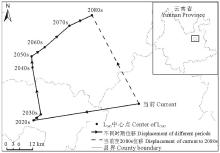 当前至2080s, L3区域的中心点由宜良县经嵩明县、寻甸彝族自治区、富民县、武定县, 最后移动至禄劝彝族苗族自治县, 总体上向西北方向移动了109.62 km, 并在2020s~2030s期间出现了往复(表3, 图6)。