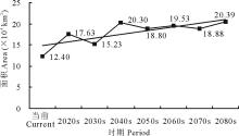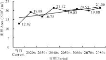 就L4等级而言, 在当前及未来A1b情景下, 其区域面积呈现出波动增加的变化趋势(图7)。总体上由当前的12.40 km2增加至2080s的20.39 km2。