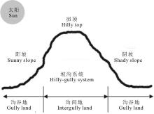 在所选小流域分别选取阳坡沟谷地、阳坡沟间地、峁顶、阴坡沟间地和阴坡沟谷地5种立地环境(图2), 每个小流域每种立地环境选取3个重复样地。