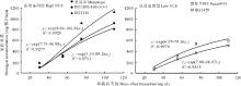 | 图1 氮高效和低效基因型水稻氮素积累量与移栽后天数关系Fig.1 Relationship between nitrogen accumulation and days after transplanting of high and low NUE |