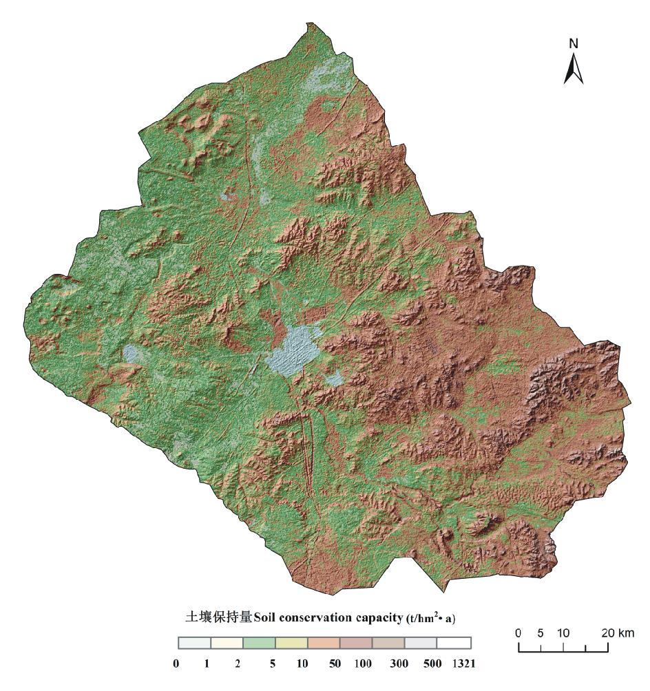 在土壤保持功能计算过程中尚存在一些不足:首先, 各因子初始数据精度不一致, 可能会产生误差。其次, 各因子计算过程中产生的误差, 如计算降雨侵蚀力因子时, 对降水量空间数据产品进行重采样, 数据精度有限; 计算土壤可蚀性因子时, 采用前人的土壤颗粒组成和有机碳数据成果[21], 数据现势性不强。尽管存在上述问题, 估算结果也有待于进一步验证。但在区域尺度上开展土壤保持功能研究时, 应用RUSLE模型、GIS和遥感技术, 仍然是一种可行而有效的技术途径[13]。