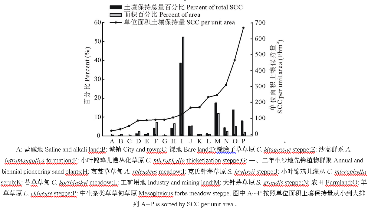 | 图4 锡林河流域不同植被类型土壤保持功能Fig.4 The soil conservation function of different vegetation types in Xilin River Basin |