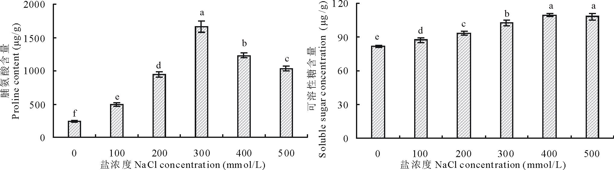 盐分胁迫对海滨雀稗叶片脯氨酸和可溶性糖含量的影响