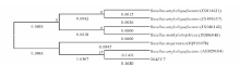 2) gyrB基因序列鉴定。经测序得到菌株264ZY7的gyrB基因有595个碱基, 其基因序列在GenBank中与已知序列进行Blast同源性比对, 结果表明, 264ZY7(KF831372)与已报道的解淀粉芽孢杆菌(HQ840645)相似性达99%, 经建立的系统发育树(图5)可看出拮抗菌株264ZY7与解淀粉芽孢杆菌(AB829604)聚在一起, 再结合形态学特征和16SrDNA序列分析结果, 将其鉴定为解淀粉芽孢杆菌Bacillus amyloliquefaciens。