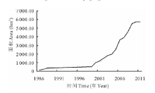 | 图2 1986-2010 年北京市高尔夫球场面积变化Fig.2 The area variation of golf course in Beijing region during 1986-2010 |