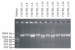 2.3.1 形态学鉴定 挑取MRS固体平板上直径2~3 mm、白色或乳白色、表面光滑凸起、大小不一的菌落, 经革兰氏染色为阳性, 过氧化氢酶试验为阴性的菌株标记为乳酸菌, 共分离到10株, 编号为CSCWL 1-2、CSCWL 1-4、CSCWL 1-6、CSCWL 1-7、CSCWL 1-11、CSCWL 1-14、CSCWL 1-16、CSCWL 1-17、CSCWL 1-18和CSCWL 1-19。