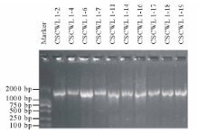 同源性与系统发育分析:将测序结果利用DNAstar进行序列拼接处理, 并与NCBI上Microbes Nucleotide数据库进行同源性比对分析, 同时采用MEGA 5.1软件中的Clustal W对序列进行多重比较, 利用邻位相连法构建系统发育树, 采用Bootstrap法对进化树进行1000次重复统计验证, 获得分类或系统发育地位。
