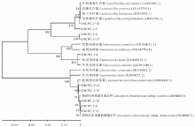 参考乳酸菌通用引物进行细菌16S rDNA基因扩增, 正向引物为27f:AGAGTTTGATCCTGGCTCAG[19]; 反向引物为1492r:CTACGGCTACCTTGTTACGA[20], 上述引物由上海桑尼生物技术有限公司合成。细菌基因组DNA提取按照试剂盒说明进行, 采用DYY11电泳仪进行DNA检测, 并在MG96+PCR仪中进行PCR扩增, 扩增体系为50 μ L:2× Taq MasterMix 25 μ L、上下游引物各2 μ L、模板DNA 1 μ L、RNase-Free Water 20 μ L。反应条件为:94℃预变性2 min; 94℃ 30 s, 55℃ 30 s, 72℃ 1 min 30 s, 30个循环; 72℃延伸10 min, 4℃保存。预计扩增片段长度约为1600 bp。将未纯化PCR产物送上海生工生物工程技术服务有限公司测序。