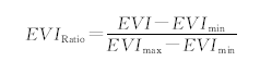 式中, EVIRatio为输出比值(值域为0~1), EVI为标准增强植被指数(enhanced vegetation index)值, EVImin指年内最小值, EVImax为年内最大EVI值。