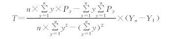 一元回归趋势法是对随时间变化的变量进行回归分析的模型[21], 已经广泛应用到植被动态变化研究中, 取得了良好的结果。该模型应用ArcGIS栅格计算功能, 基于栅格单元来分析植被物候逐年的变化趋势, 从而反映植被物候的时空动态变化量。其模型如下: