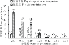 | 图2 不同渗透势PEG溶液对种子出苗势的影响Fig.2 Effects of different osmotic potential of PEG on the emergence vigor of seed |