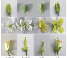 本试验选取的饲菜兼用型花椰菜细胞质雄性不育系09-R9、保持系09-24, 温敏核雄性不育系GS-19均是甘肃省农业科学院蔬菜研究所选育和提供。其中细胞质雄性不育系09-R9育性稳定, 不产生花粉粒, 育性变化不受环境条件影响, 09-24是09-R9的保持系。温敏核雄性不育系GS-19的育性表现与温度有关, 温度高于18 ℃表现为不育, 温度低于16 ℃时表现为完全可育。