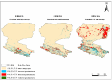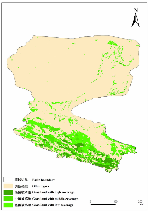 黑河流域LUCC数据[41, 42, 43]来源于黑河计划数据管理中心(http://westdc.westgis.ac.cn), 所有数据采用统一的投影和坐标系, 分辨率为1∶ 10万。采用国家土地分类系统, 包括6个一级分类(耕地、林地、草地、水域、城镇和农村居民及工矿用地和未利用土地), 25个二级分类。其中草地分类体系为:高覆盖草地, 指覆盖度> 50%的天然草地、改良草地和割草地, 此类草地一般水分条件较好, 草被生长茂密, 一般分布在山区、丘陵及河间滩地、沙地丘间等; 中覆盖草地指覆盖度20%~50%的天然草地和改良草地, 此类草地一般水分不足, 草被较稀疏主要分布在较干燥地方; 低覆盖草地指覆盖度 5%~20%的天然草地, 此类草地水分缺乏, 草被稀疏, 牧业利用条件差 主要生长在干燥地方。草地向未利用地转换, 以及高覆被草地向中低覆被草地转换, 中覆被草地向低覆被草地转换意味着草地退化。