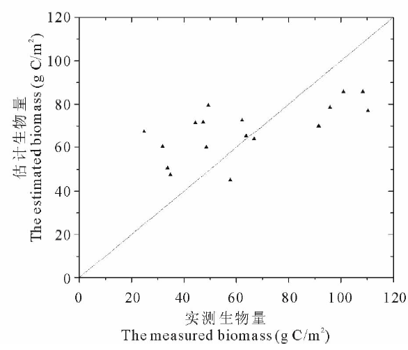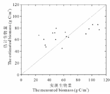 (1)NDVI的幂指数模型估算研究区草地地上生物量效果较好, 决定系数R2达0.6168, 均方根误差RMSE为8.735 g C/m2。