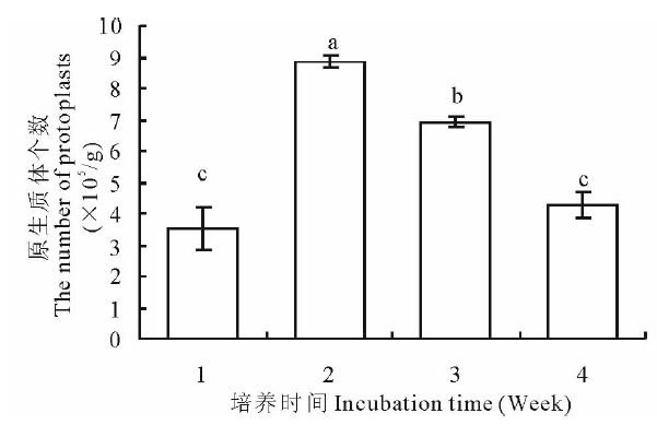 原生质体产量(个/g)=原生质体密度× 原生质体悬浮液总体积(mL)/制备原生质体所用材料的鲜重