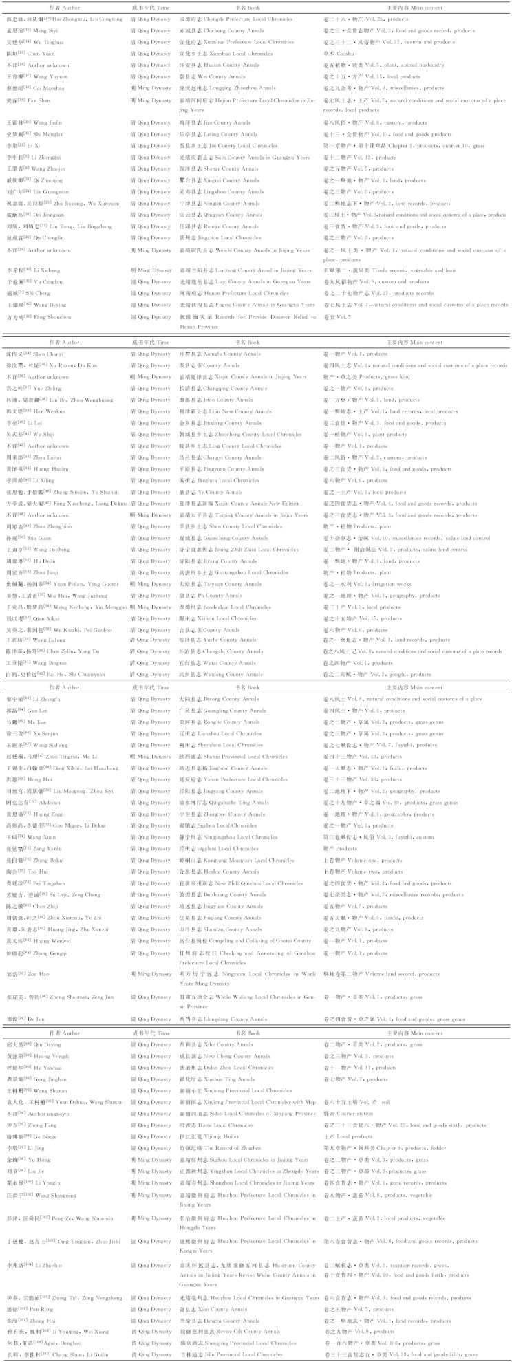 | 表1 记载有苜蓿的明清方志 Table 1 The local chronocles contained alfalfa records in Ming and Qing dynasty |