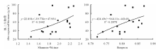 高寒草地群落的多样性指数如Shannon-Weiner指数以及Simpson 指数的变化可以部分解释地上生物量变化, 其解释关系如图5所示, 两者存在一定的相关性(P< 0.05), 而地上生物量与E. Pielou均匀度指数没有显著相关性(P> 0.05)。尽管存在一定的相关性, 但Shannon-Weiner指数变化只能解释24.4%的地上生物量变化, Simpson 指数变化也只能解释28.8%的地上生物量变化, 但多样性指数和地上生物量表现出正相关。因此高寒草地的物种多样性不能作为该地区地上生物量的决定性因素, 即不能判定生产力水平。另外, 地上生物量也不与各种功能群的重要值与多样性指数存在显著相关关系(P> 0.05)。