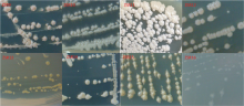 | 图1 甘农三号紫花苜蓿种带细菌分离物ZSR9~16的菌落形态Fig.1 The colony shape of seed-borne bacterial strains on NA medium of lucerne cultivar Gannong No.3 |