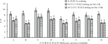 | 表3 刈割处理对8个紫花苜蓿品种根颈中淀粉含量的影响 Table 3 Effect of cutting on the starch content of 8 alfalfa varieties in the root of neck (mg· g-1 FW) |