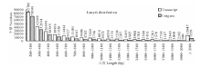 Illumina高通量测序平台(HiSeq-PE150)测序共得到139767803条原始reads, 总长度为41.94 Gb, 去除接头和低质量片段后reads数为137626643条, 大小为41.30 Gb, 原始测序数据已上传至NCBI(SRX2792325)。使用Trinity对所有6个样品的转录组clean reads进行无参组装, 共得到转录本270207条, 总长度为191632770 bp(191.6 Mb), 平均长度为709.21 bp, N50为1075 bp(1 kb)。提取最长转录本得到Unigene共180770条, 总长度为106133700 bp(106.1 Mb), 平均长度为587.12 bp, N50为806 bp。转录本与Unigene长度分布如图1所示。
