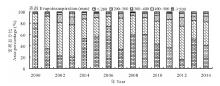 遥感蒸散产品(MOD16)源自美国蒙大拿大学网站(http://ntsg.umt.edu/project/mod16)。根据研究区选择卫星轨道号h26v05, 分别下载2000-2014年期间的MOD16A3年蒸散数据, 空间分辨率为1 km。由于原始数据是采用SIN投影的HDF文件格式存储, 因此用MRT(MODIS Reprojection tools)软件进行批量裁剪和重投影。