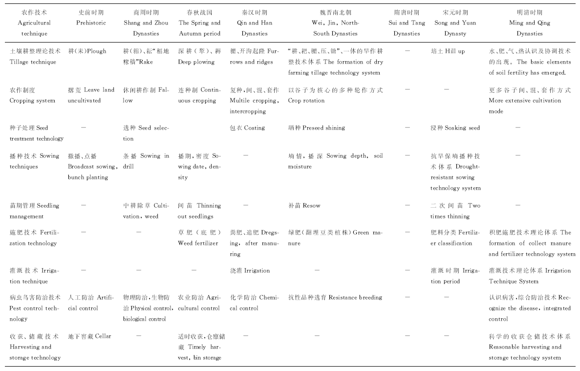 | 表2 中国古代谷子各项农作技术出现时期 Table 2 The emergence period of millet cultivation techniques in ancient China |