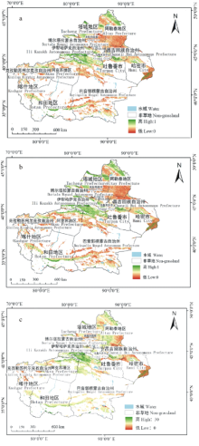 | 表2 2010-2014年新疆不同行政区草地变化趋势 Table 2 Grassland variation trends in different administration regions in Xinjiang during the period from 2010 to 2014 (%) |