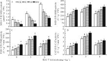 MDA含量测定采用硫代巴比妥酸(TBA)法[21], 超氧化物歧化酶(superoxide dismutase, SOD)测定采用氮蓝四唑还原法[23], 过氧化物酶(peroxidase, POD)测定采用愈创木酚法[24], 过氧化氢酶(catalase, CAT)活性测定参照陈建勋等[25]的方法, 采用紫外吸收法测定。