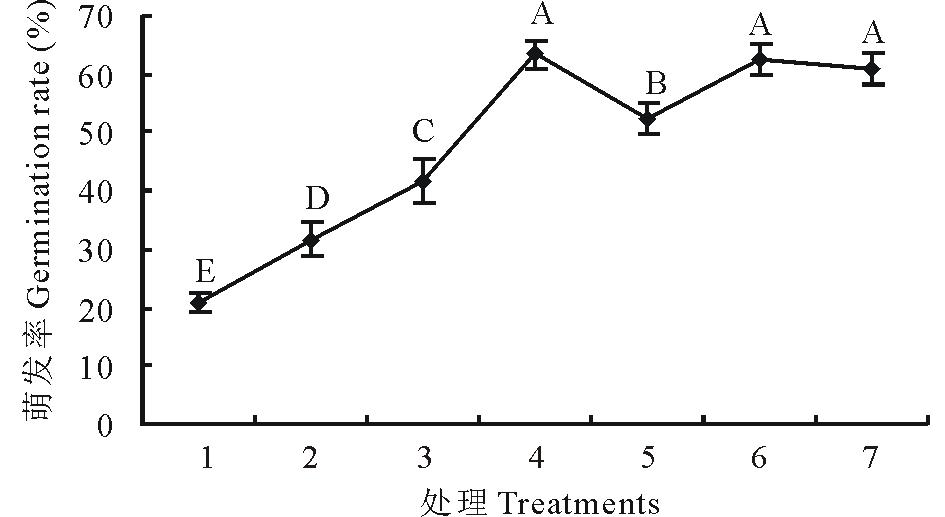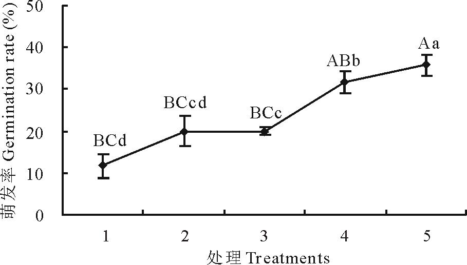 | 图5 4 h梯度不同时长变温处理对羊草种子萌发的影响Fig.5 Germination rate in different duration of variable temperature under 4 h interval |