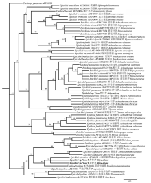 异针茅作为青藏高原地区重要的乡土草种之一,是高寒草甸草原主要的建群禾草种类。迄今为止,有关异针茅所感染内生真菌的种类和分类地位的研究尚未见报道。基于此,以青海高原地区两个地理种群的异针茅为研究对象,采用常规分离培养形态观测和管家基因扩增目的片段基因并与已公布的内生真菌序列构建系统发育树的方法,确定异针茅感染内生真菌的种类和分类地位。结果表明:异针茅分离出的内生真菌菌落形态、生长速度和分生孢子形态等均与 Epichloё属内生真菌的形态特征相似。编码蛋白 tub和肌动蛋白 actin序列构建的系统发育树表明,异针茅感染的内生真菌种类分别为 Epichloё gansuensis和 Epichloё sylvatica,而转录延长因子 tef序列构建的系统发育树发现异针茅感染的内生真菌种类分别为 Epichloё inebrians和 E. sylvatica。由此可见,异针茅感染的内生真菌分别为甘肃内生真菌 E. gansuensis、醉马草内生真菌 E. inebrians和欧洲短柄草内生真菌 E. sylvatica;进一步揭示异针茅感染的内生真菌表现出多样性,异针茅与其感染的内生真菌间未形成严格的宿主特异性。
