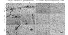 试验采用遮雨棚于2018年在甘肃农业大学校内试验田(36.08° N, 103.70° E, 海拔1525 m)进行。试验地为沙壤土, 中等肥力, 前茬种植玉米, 播前施尿素80 kg· hm-2。采用裂区试验设计, 试验地划分为旱区和水区等2个一级小区, 再将每个一级小区又细分为3个二级小区随机排列廊黄、昌7-2和TS141, 每个二级小区3.0 m2(1.5 m× 2.0 m), 并于4月26日播种, 行距50 cm, 株距20 cm, 每行10株, 9月30日收获。旱区干旱胁迫处理参照彭云玲等[1]的方法, 即在玉米开花前10 d开始停止灌水, 18 d后恢复灌水; 水区正常供水处理每隔7~10 d灌水一次, 直到玉米生理成熟。待玉米干旱胁迫处理14 d后取3株长势整齐一致的植株穗位叶, 测定其穗位叶的株型结构、上/下表皮气孔形态、叶绿素含量、光合特性及产量。