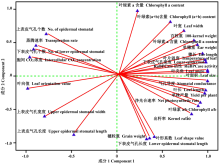 | 图6 所测28个相关性状的耐旱系数主成分特征向量Fig.6 Eigenvectors of drought resistance coefficient with 28 measured traits |